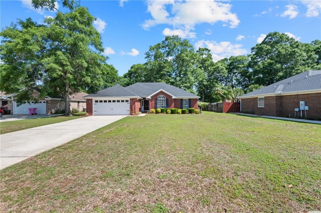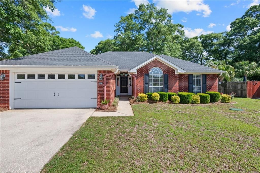 **USDA Eligible - 100% Financing Available for Qualified Buyers (Zero Down!)**VRM: Seller will entertain offers between $275,000-$295,000. List price represents the lower end of the range. Seller reserves the right to accept any offer within or above the range.Welcome to this beautifully maintained traditional brick home tucked away in a quiet cul-de-sac in one of West Mobile's most desirable neighborhoods. Situated on nearly half an acre, this property offers the perfect blend of space, comfort, and functionality with a fully fenced backyard, manicured landscaping, and a detached storage building/workshop. Inside, you'll find a thoughtfully designed 3 bedroom, 2 bathroom floor plan featuring laminate wood flooring throughout, abundant natural light, and floor-to-ceiling windows that showcase the private backyard. The spacious living room is anchored by a cozy gas log fireplace, creating a warm and inviting atmosphere. The kitchen has been tastefully updated with newer countertops, modern backsplash, updated sink, under-cabinet lighting, and all new appliances. It offers both a bar-top seating area and a separate dining space, making it ideal for everyday living and entertaining. The oversized primary suite features a double vanity, soaking tub, walk-in shower, and generous walk-in closets. Additional highlights include a large laundry room, screened-in back porch, and an outdoor fire pit area perfect for relaxing evenings. The home also boasts a FORTIFIED roof (approx. 4 years old), offering potential insurance savings and added peace of mind. Conveniently located just minutes from top-rated schools, shopping, dining, and the new Publix, this home combines privacy with accessibility.Buyers must be pre-approved at the list price prior to scheduling a showing. Buyer and buyer's agent to verify all information deemed important.